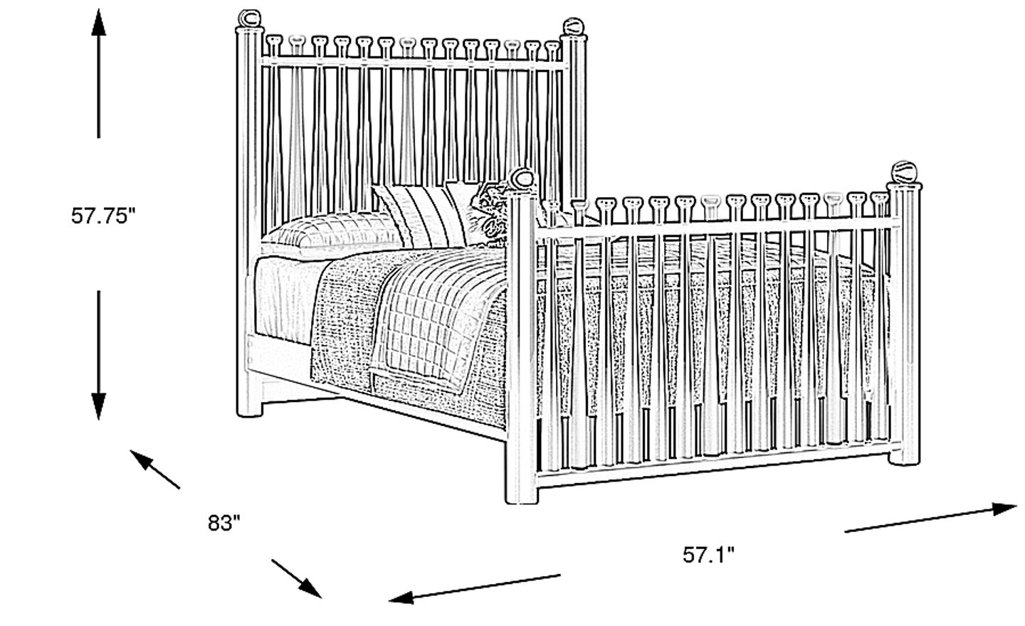 It's a grand slam good time for your sports crazy kid with the Batter Up bed! Wooden baseball bats assembled in a multitone painted finish are fixed to the iron ore frame of the full bed. These colors enable the bed to coordinate with a variety of accompanying pieces. The four finials feature leather baseballs with red lace stitching for an authentic final detail. This bed requires a foundation for proper use. Mattress and foundation sold separately.