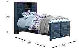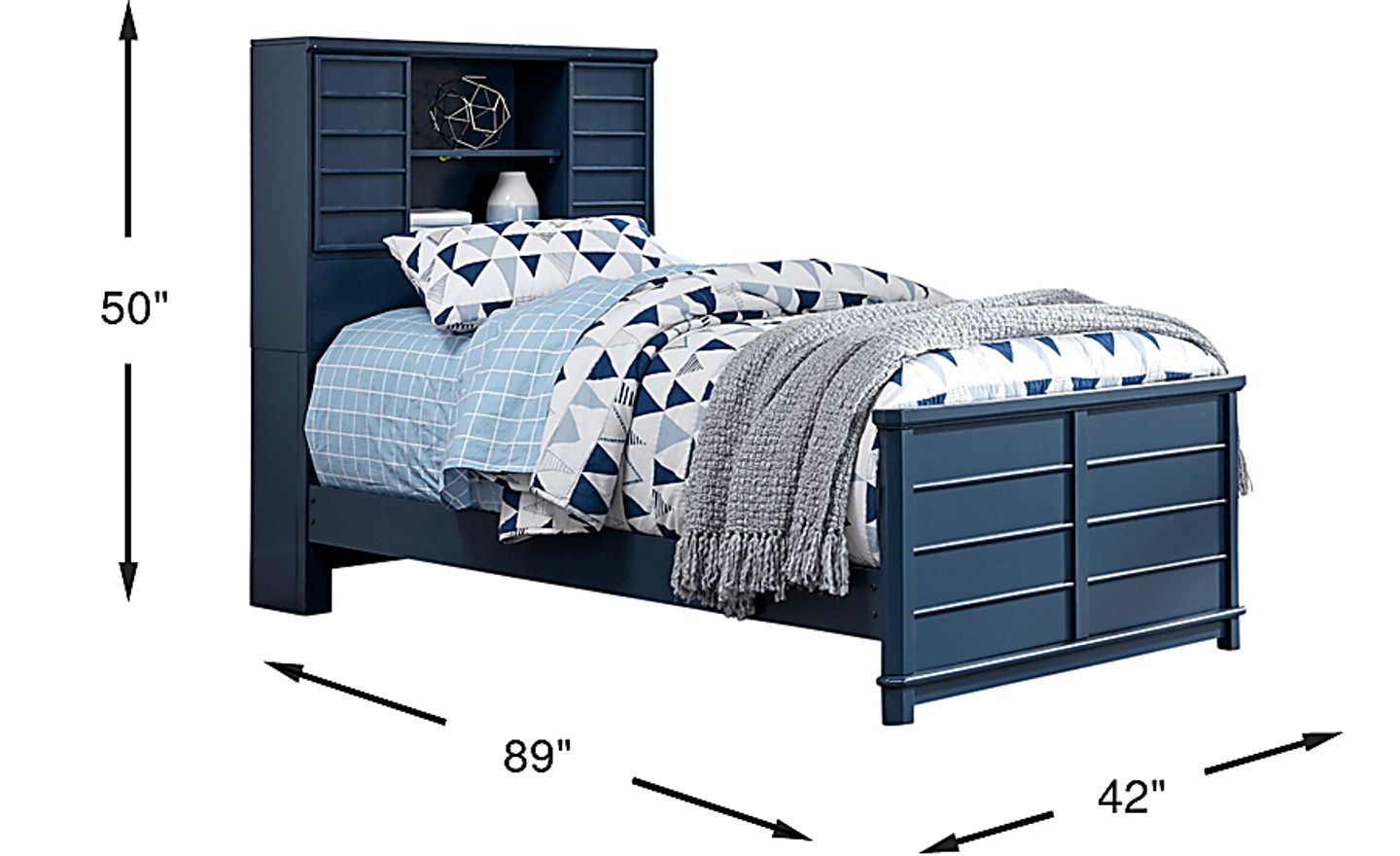 The classically designed Bay Street bookcase bed will grow with your child throughout the years. Crafted with birch solids and birch veneers with a blue finish, the headboard's sliding doors conceal shelves perfect for display or organization. The simple, transitional style leaves plenty of room for your child to make this bed their own. Mattress and foundation (if required) sold separately.