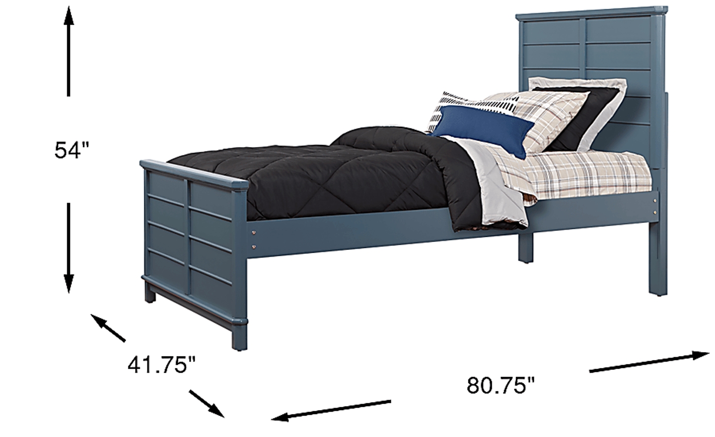 The classically designed Bay Street twin panel bed will grow with your child throughout the years. Crafted with birch solids and birch veneers with a blue finish, subtle lines on the headboard and footboard add interest. The simple, transitional style leaves plenty of room for your child to make this bed their own. Mattress and foundation (if required) sold separately.