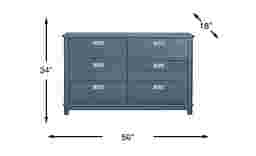Clean lines and sturdy construction make the Bay Street dresser a timeless addition to your child's room. Six drawers feature square brushed nickel hardware and a combination of French and English dovetail drawer construction for stability, while subtle lines on the drawer fronts adds eye appeal. Crafted with birch solids and birch veneers in a blue finish, the versatility of this dresser ensures that it will grow with your child and remain a classic bedroom piece for many years to come.