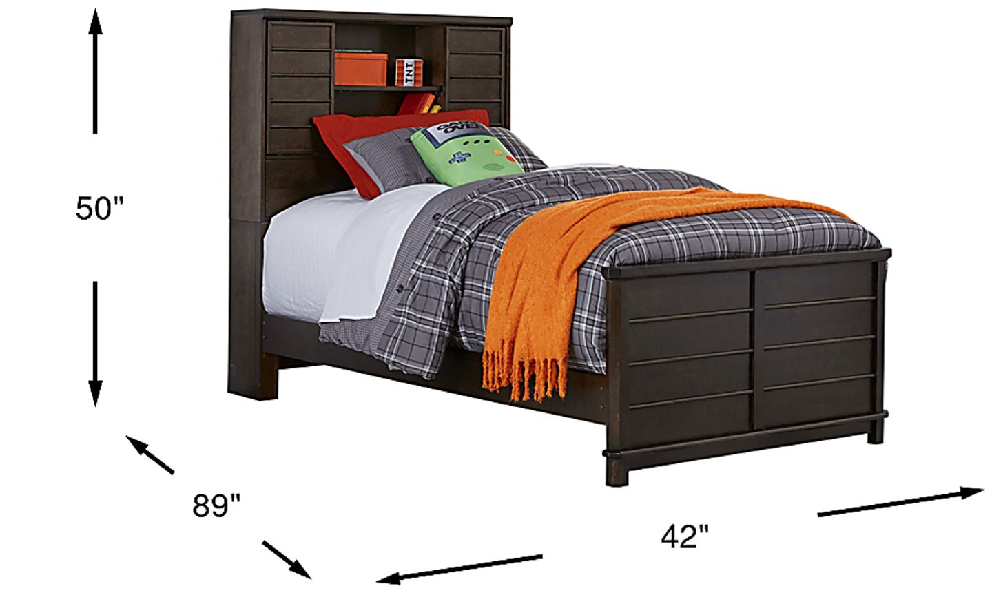 The classically designed Bay Street bookcase bed will grow with your child throughout the years. Crafted with birch solids and birch veneers with a charcoal finish, the headboard's sliding doors conceal shelves perfect for display or organization. The simple, transitional style leaves plenty of room for your child to make this bed their own. Mattress and foundation (if required) sold separately.