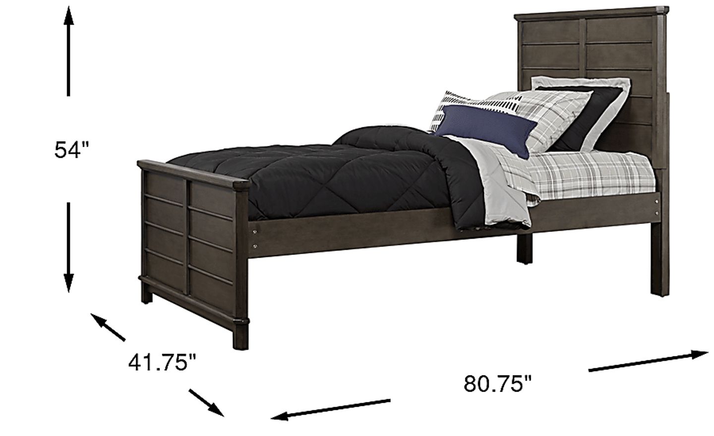 The classically designed Bay Street twin panel bed will grow with your child throughout the years. Crafted with birch solids and birch veneers with a charcoal finish, subtle lines on the headboard and footboard add interest. The simple, transitional style leaves plenty of room for your child to make this bed their own. Mattress and foundation (if required) sold separately.