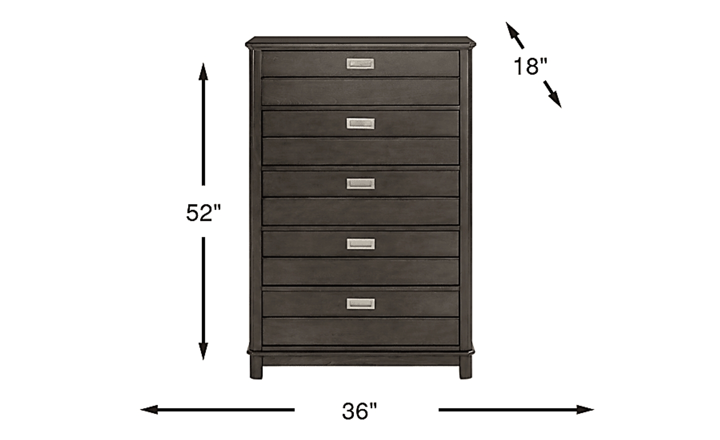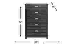 Clean lines and sturdy construction make the Bay Street chest a timeless addition to your child's room. Five drawers feature square brushed nickel hardware and a combination of French and English dovetail drawer construction for stability, while subtle lines on the drawer fronts adds eye appeal. Crafted with birch solids and birch veneers in a charcoal finish, the versatility of this chest ensures that it will grow with your child and remain a classic bedroom piece for many years to come.