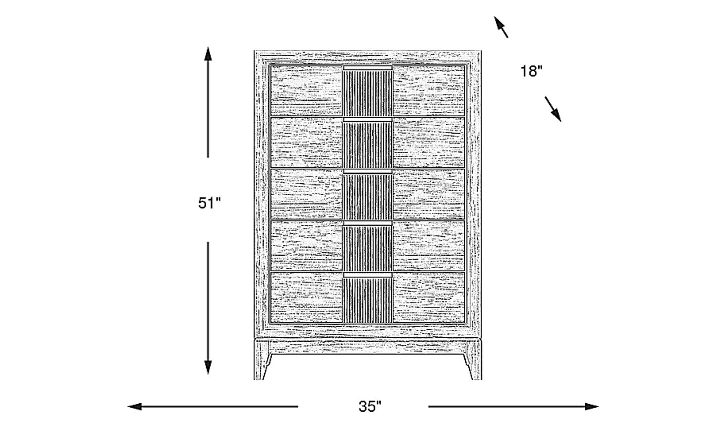 Defined by rich features and a beautiful appearance, the Bellante Jr. chest is the perfect bedroom storage essential. Crafted with pine solids and oak veneers, this piece is finished in a linen color for a warm and inviting appearance. Reeded detailing adds another bit of complexity to the style while brushed nickel finished hardware gives the look a wonderful panache.