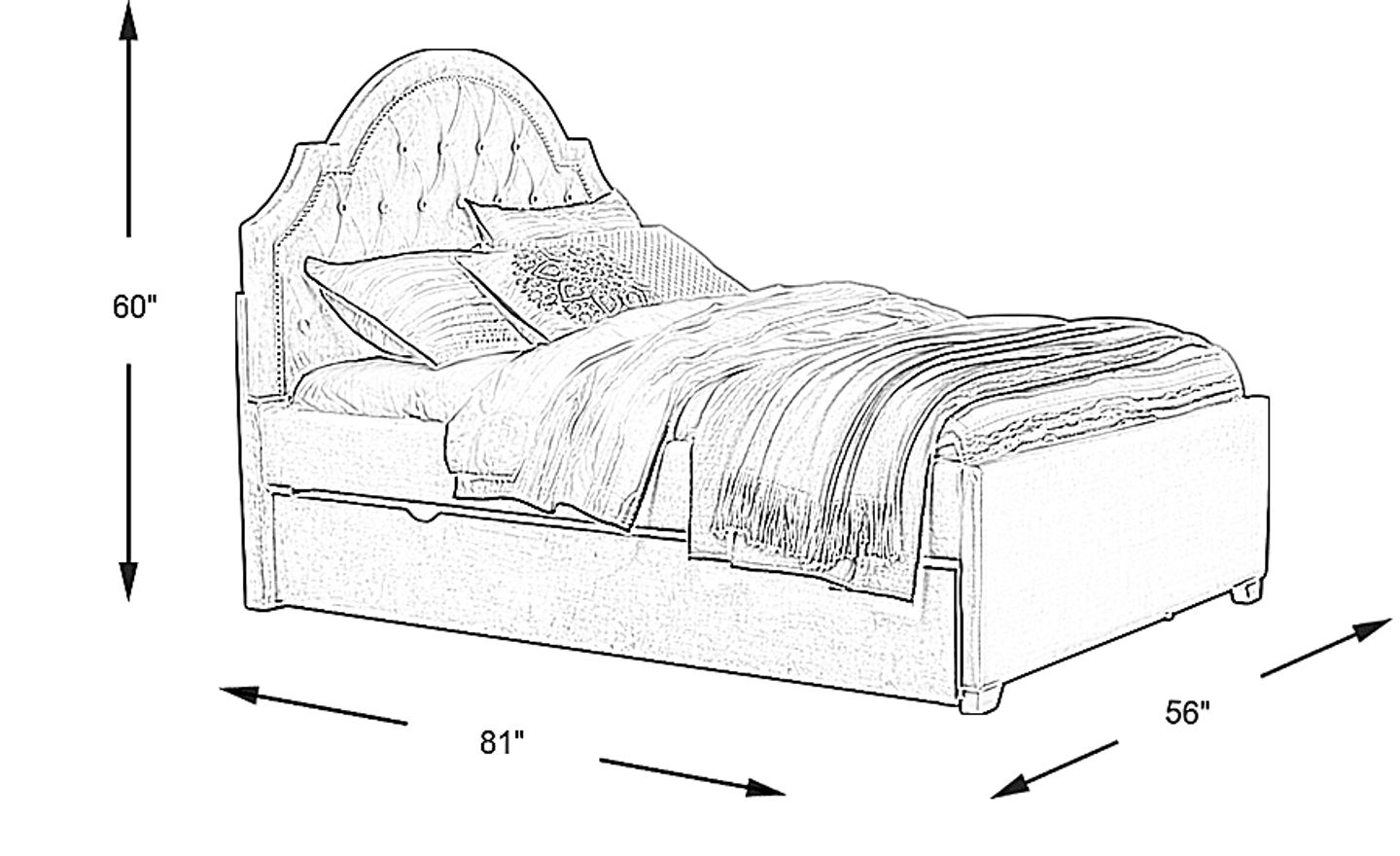 Regal detailing and a pretty teal color make the Braelynn bed the perfect option if you're looking to add a little feminine flair to your guest room or child's bedroom. The headboard features nailhead trim and beautiful tufting details, while the velvet upholstery adds a touch of sophisticated softness. The included twin-size storage trundle gives you the perfect solution for you kid's storage needs and can also double as an extra bed during sleepovers. Mattresses and foundation (if required) sold separately.