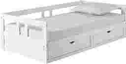The Brigan daybed provides unparalleled versatility with its simple and stylish features, allowing it to be used for anything from kids' bedrooms to guest rooms to easily achieving a king size bed for larger bedrooms. Its construction from Brazilian pine ensures it is both visually stunning and incredibly durable, with a maximum recommended weight of 200 pounds. It also comes with two storage drawers conveniently accessible when you extend the bed, helping maximize the space in any bedroom. The daybed extends from twin to king size quickly and easily. When in twin size, it measures 44 inches wide x 77 inches deep x 25 inches high, while in the extended king size bed position it measures 80 inches wide x 77 inches deep x 25 inches high. To create a king-size bed, simply extend the bed platform and slide one twin mattress over. With features like these, it's sure to fit any of your decor, whether modern, traditional or a more rustic, country look. Customer assembly is required.