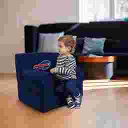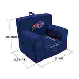 This cozy Buffalo Bills foam chair is perfect for kids aged 3 to 6, featuring vibrant team colors and embroidered logos that will delight any young sports fan. Designed with comfort and style in mind, it includes a convenient carry handle, making it easy for young ones to move their chair and join the family for fun and relaxation. Whether it's game day or playtime, this chair is sure to be a favorite spot for your child to sit and enjoy. Customer assembly is required.