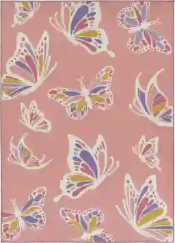The Butterfly Spice rug adds a fanciful vibe to your childs nursery or playroom. With pops of color and comforting hues of pink and white, this pattern depicts a fairytale scene of multiple butterfly fluttering through the air. Easy to clean and durable enough to last many years. For maintenance, vacuum with beater bar/rotating brush and spot clean with mild detergent.