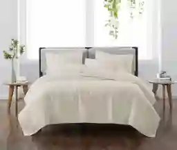 This set offers a complete top-of-bed solution, including one 90x90 inch quilt and two 20x26 inch standard shams. Purchasing these items as a coordinated set ensures a consistent color and quilted texture across the entire bed, providing a more polished look than buying individual pieces.