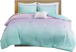 The Candy Ombre reversible comforter set brings a lively and colorful update to your bedroom. This ultra-soft reversible comforter features an ombre pattern of aqua, blush, and pastel purple that flips to a solid aqua on the reverse. Shams (1 for Twin Sizes) come in a variety of colors that coordinate with the comforter, while brilliant sparkles and glitter adorn the contemporary comforter set all-over, creating fun and magical look. An oblong pillow provides the perfect finishing touch to complete the comforter set. Hypoallergenic filling in the comforter and pillow also provides exceptional warmth and comfort. Machine washable for easy care, this printed reversible ombre comforter set is sure to brighten your bedroom with a whimsical flair. Sham varieties include aqua, blush, and pastel purple colors; only 1 color variety in each bedding set. Customer assembly is required.