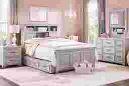 The potential for awesome new adventures is always close at hand when you choose the Canyon Lake bookcase bed for your little bookworm. Crafted of pine and poplar solid wood with pine veneers, this bed's brilliant design captures the look and feel of casual, quaint cottage living. Shelving on the headboard is equipped to house hardbacks, paperbacks, comics and so much more. Sliding doors offer additional storage with cubbies hidden away for quick and seamless access. Integrated wire management holes even allow you to run cables to power sources for electronic devices. Framed panel details on the footboard supply a classic charm that pairs perfectly with a variety of styles. A clean ash gray finish, enhanced with a wire brushed texture, provides the perfect final detail for the ultimate bookcase bed. Mattress and foundation (if required) sold separately.