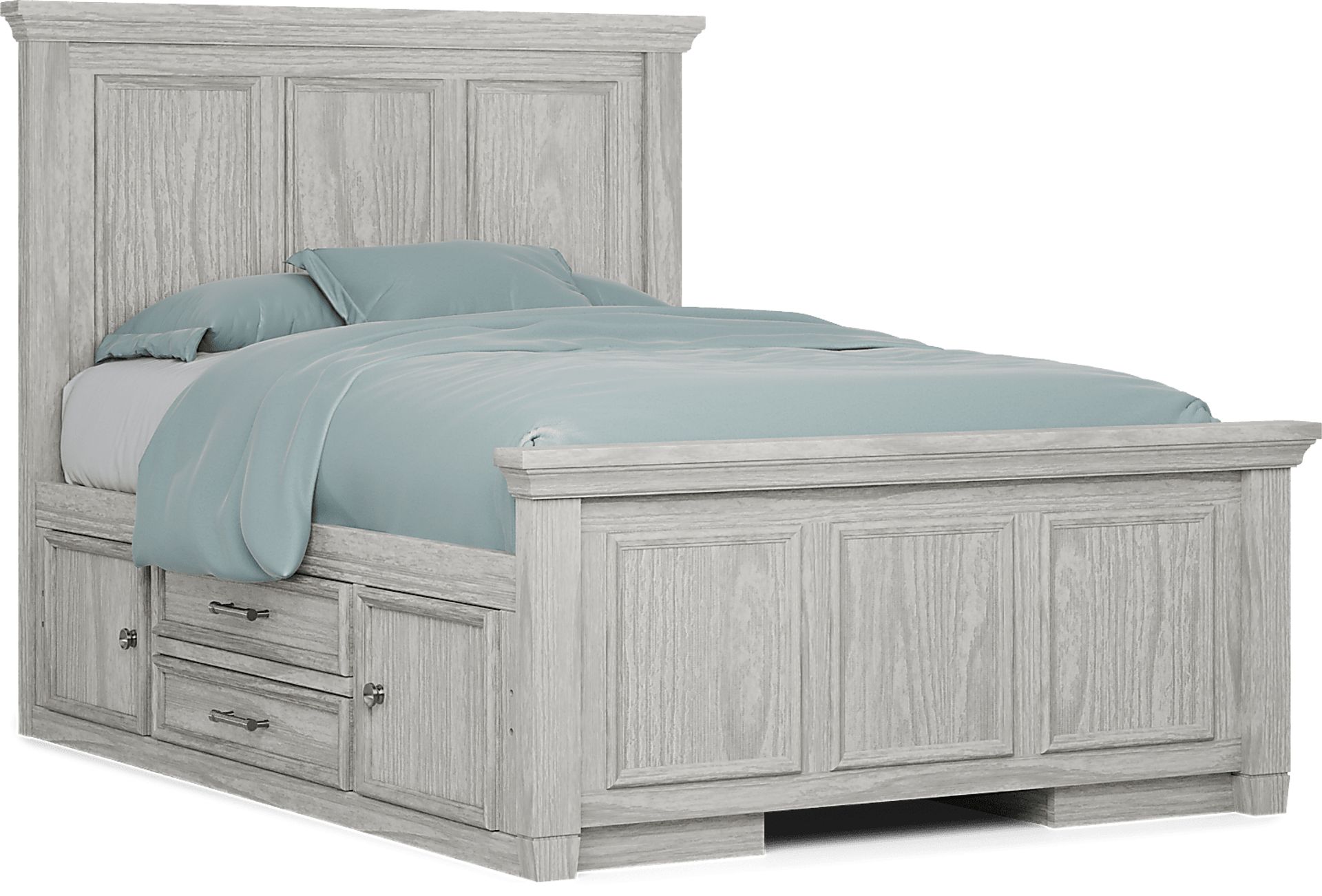 Kids Canyon Lake Ash Gray Full Panel Bed With 2 Storage Side Rails