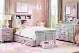 The potential for awesome new adventures is always close at hand when you choose the Canyon Lake bookcase bed for your little bookworm. Crafted of pine and poplar solid wood with pine veneers, this bed's brilliant design captures the look and feel of casual, quaint cottage living. Shelving on the headboard is equipped to house hardbacks, paperbacks, comics and so much more. Sliding doors offer additional storage with cubbies hidden away for quick and seamless access. Integrated wire management holes even allow you to run cables to power sources for electronic devices. Framed panel details on the footboard supply a classic charm that pairs perfectly with a variety of styles. A clean ash gray finish, enhanced with a wire brushed texture, provides the perfect final detail for the ultimate bookcase bed. Mattress and foundation (if required) sold separately.