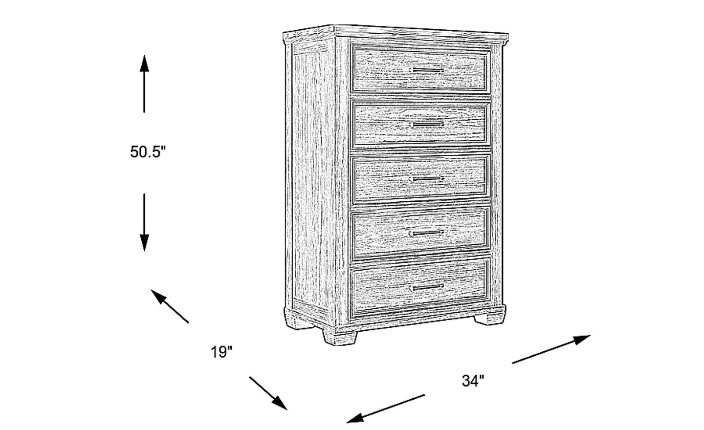 Expand storage with the stylish and useful Canyon Lake chest. Crafted of pine solids and veneers in an ash gray finish, this piece offers five drawers great for fitting into smaller rooms or closets. Industrial style hardware creates a cool and unique look for this piece.