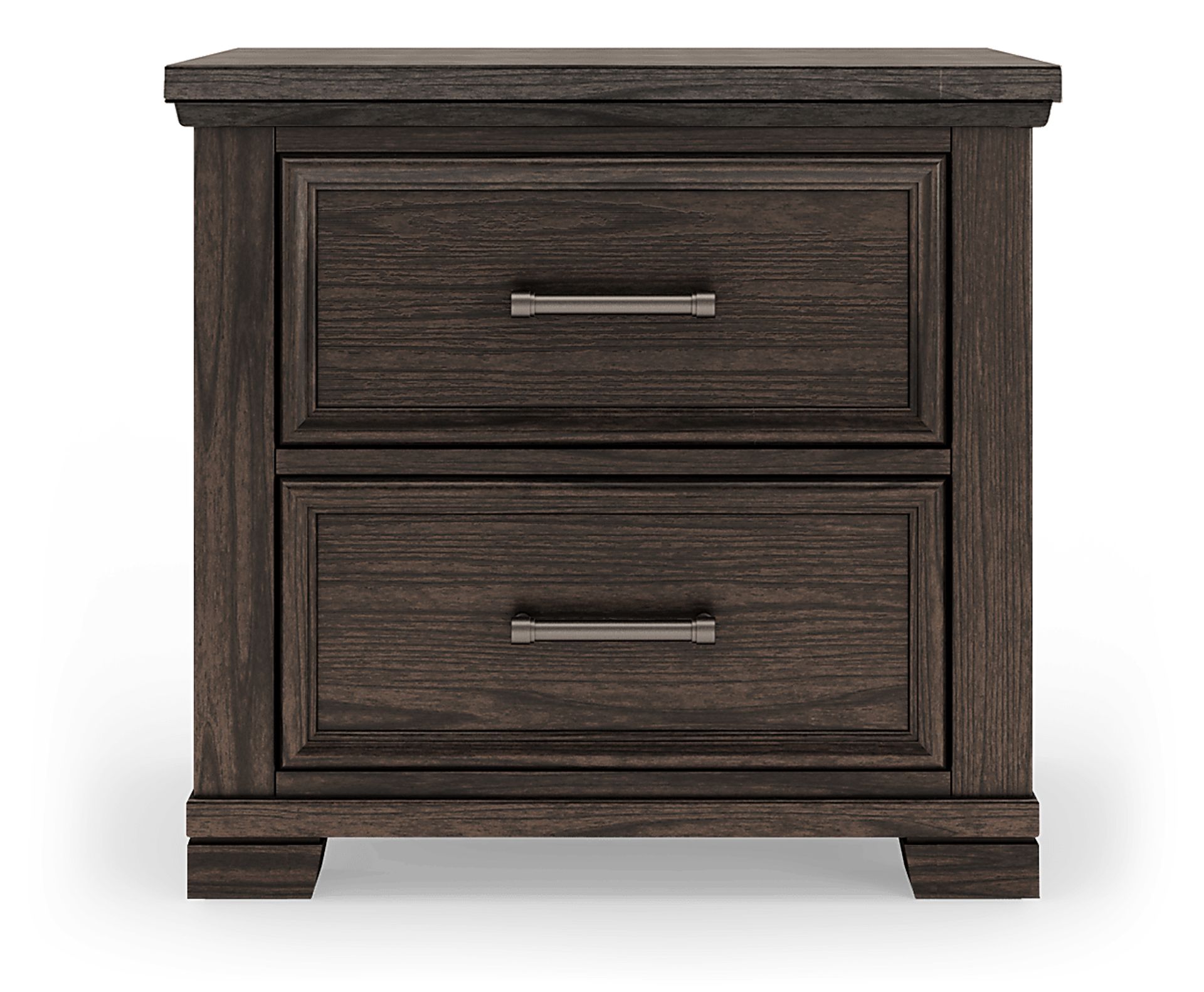 Keep books, lamps and more close at hand with the Canyon Lake Nightstand. Two drawers with industrially inspired metal hardware pulls provide ample storage and durable pine solid and veneer construction with a rich java finish.