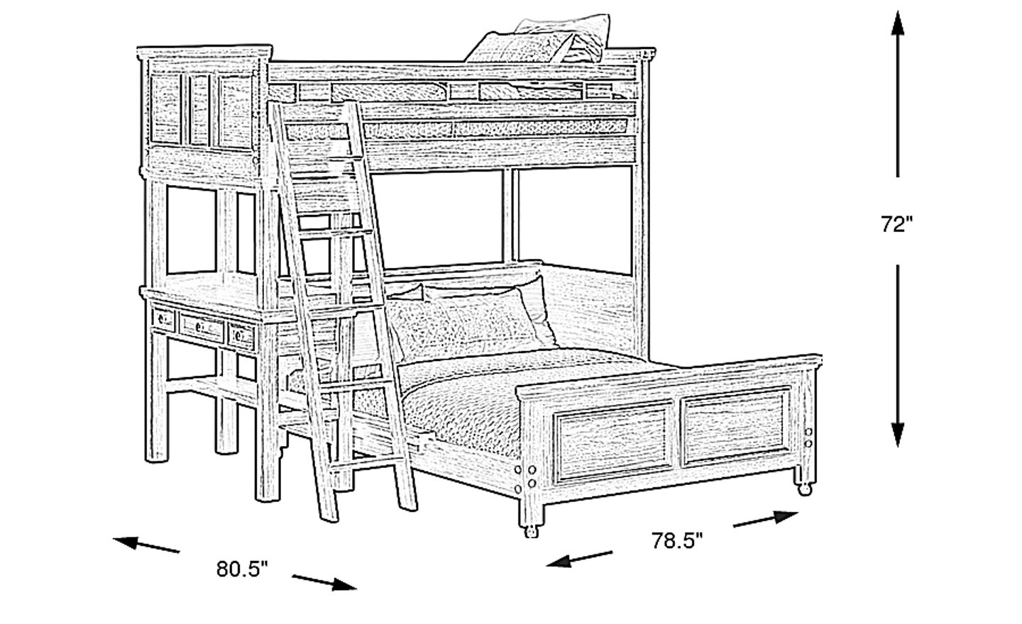 This loft bed is an exceptional solution for maximizing vertical space in compact living environments. With dimensions of 80.5" L x 78.5" W, it consolidates a twin bed, a full bed, and a study area into a single footprint. This "all-in-one" design is perfect for opening up floor space in an urban apartment, making the room feel more organized and less cramped.