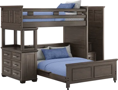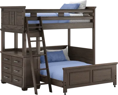 Maximize space with the Canyon Lake bunk. Featuring a classic design that is sure to stay in style, this piece provides space for sleep while opening the room up for activities. Crafted with pine veneers in a rich java finish this bunk is durable and safe for kids. A step attachment (adjustable to either end) provides safe access to the top bunk and has built-in storage drawers to maximize space. This bunk features a built-in desk at one end great for homework or games! Bunkie board required. Mattresses and foundations (if required) sold separately.