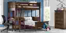 Maximize space with the Canyon Lake bunk. Featuring a classic design that is sure to stay in style, this piece provides space for sleep while opening the room up for activities. Crafted with pine veneers in a rich java finish this bunk is durable and safe for kids. This bunk features a built-in desk at one end great for homework or games! Bunkie boards required. Mattresses and foundations (if required) sold separately.