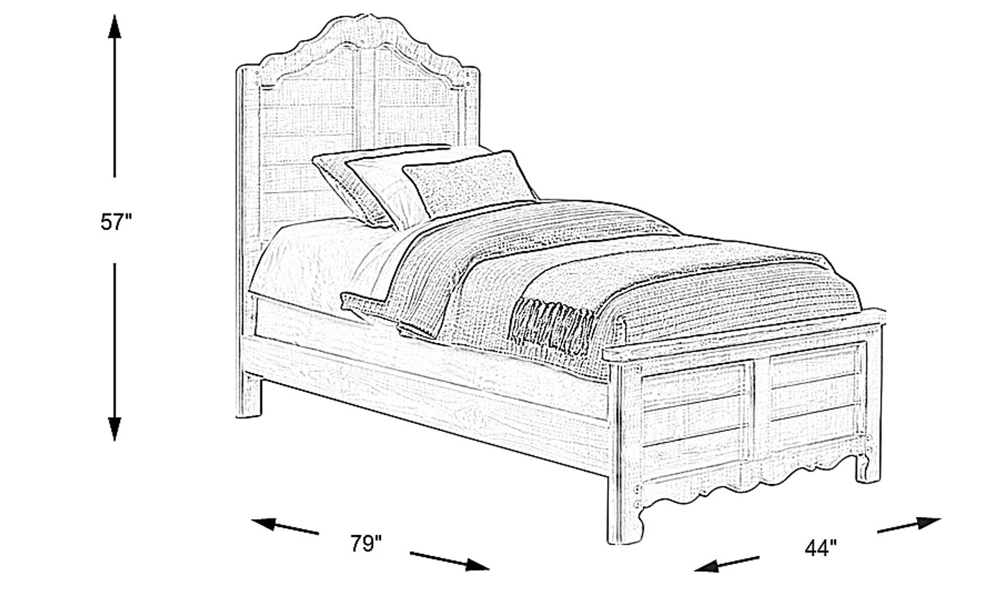 Tuck your child in to the stylish Caraway Cove bed. This bed is constructed of pine solids and features a weathered gray finish that gives the bed a vintage look. The panel headboard and the footboard have a unique scalloped design to add a bit of a stylish flair to this bed. Mattress and foundation (if required) sold separately.