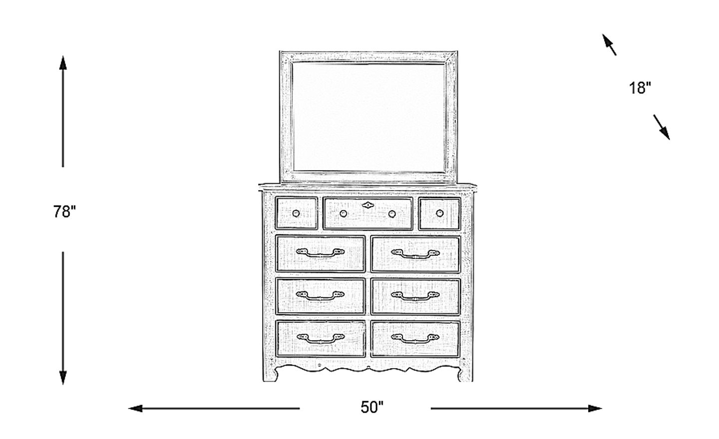 Keep your child's clothes stored away in style with the Caraway Cove dresser. This piece is crafted of pine solids in a weathered gray finish that gives it a vintage look perfect for kids or teens. Nine drawers provide a variety of storage sizes perfect for everything from socks to sweaters. Metal hardware pulls in a dark gray finish complete this piece. The attached mirror completes this awesome set.