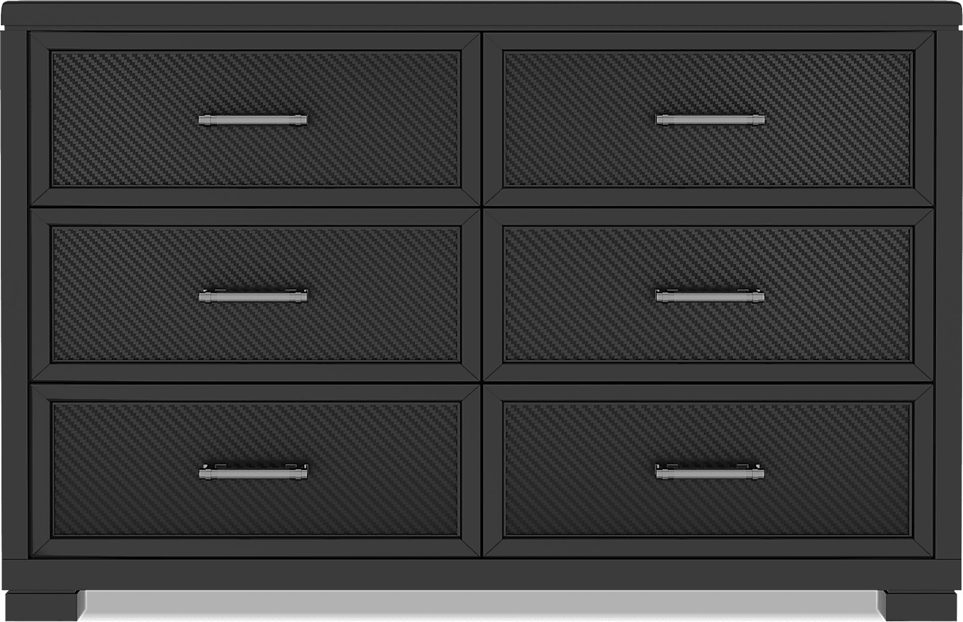With an industrial-inspired look that levels up your loved one's space, the Carbon Optix dresser delivers the ultimate style for squaring away many of their favorite things. Crafted in a high gloss, black lacquered finish, this dresser features six drawers constructed with durable English dovetail joints in front and dust proof bottoms. Each of the drawers features easy to clean upholstery that is inspired by the texture of carbon fiber material. The custom pewter drawer pulls have a diamond pattern texture with a look and feel inspired by the levers of a motorbike.