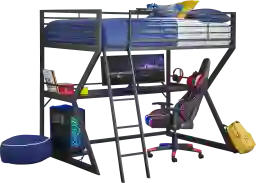 A loft bed is an exceptional space-saving solution for compact living environments. By elevating the sleep surface, you reclaim approximately 38 square feet of floor space (78"w x 71.5"d) that can be utilized for a full-scale workstation and gaming hub. This vertical design is perfect for maximizing functionality in smaller urban bedrooms without sacrificing a full-size sleeping area.