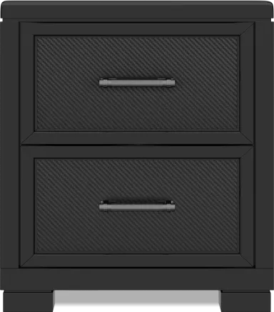 With an industrial-inspired look that levels up your loved one's space, the black Carbon Optix twin gaming loft bedroom delivers the ultimate convenience for game time. Constructed from powder coated metal and carbon fiber, the loft features a desk that has remote-controlled red, blue, purple, and green lights, or an epic combination of them all. Interchangeable and versatile, the included three-piece accessory kit features a short shelf that can be used as a nightstand, a hook for headphones and a shelf perfect for a gaming CPU. These accessories can be attached to the lower rail, side rail, guard rail or rail behind the desk. Crafted in a high gloss, black lacquered finish, the coordinating chest features four drawers constructed with durable English dovetail joints and dust proof bottoms. Each drawer front has easy to clean upholstery. Custom pewter drawer pulls have a diamond pattern texture with a look and feel inspired by the levers of a motorbike. Mattress and foundation (if required) sold separately.