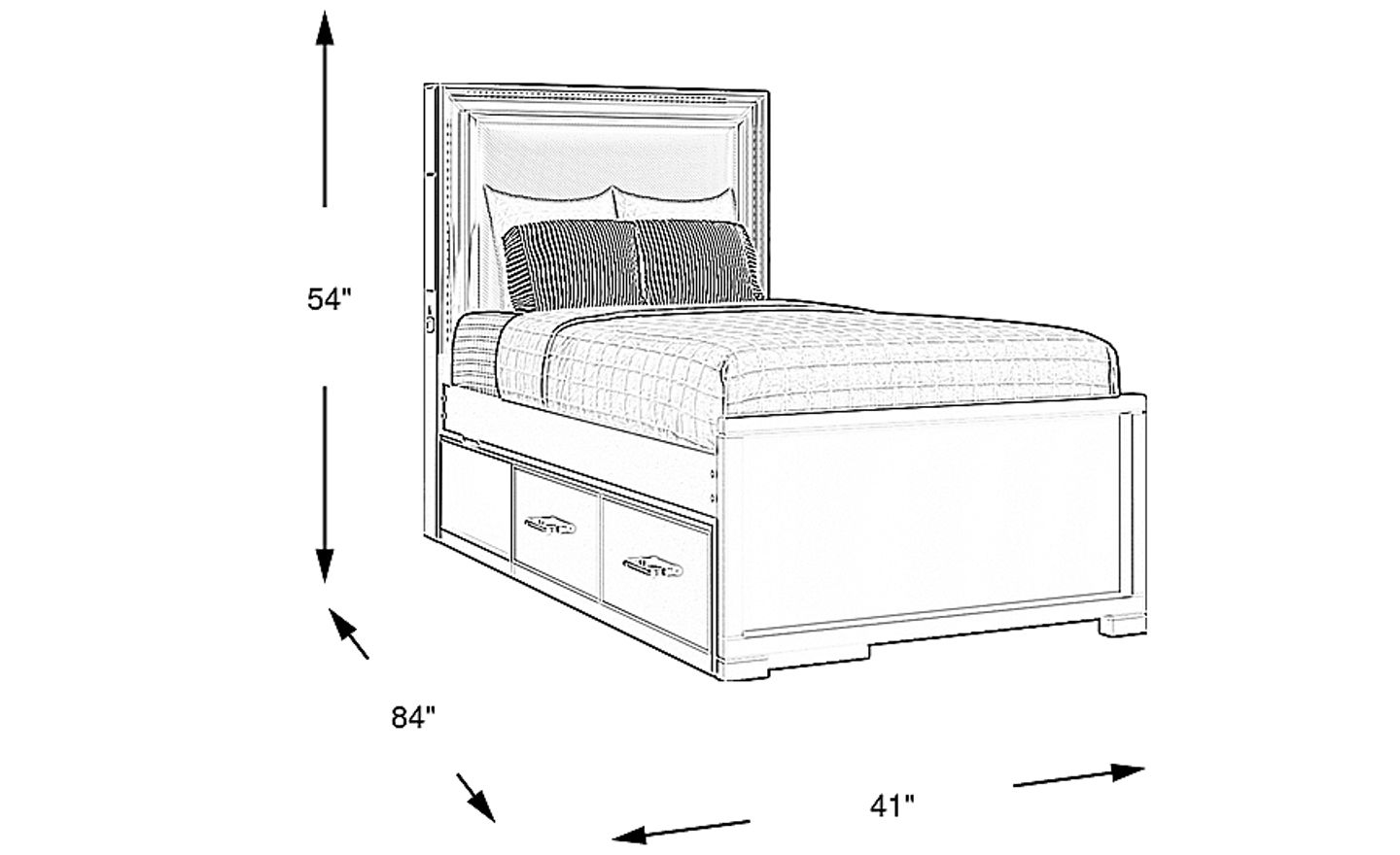 Level up your loved one's space with the industrial-inspired look of the Carbon Optix twin storage bed. Crafted in black lacquered finish, the bed features a headboard upholstered with contemporary high-performance fabric that has the texture of carbon fiber. Integrated multifunctional, multicolor remote-controlled LED lights glow, strobe and beam to stunning effect with the remote control. The headboard's left side features a touch sensor power button for the lights and dual USB-A ports for charging. Additional side compartments are awesome for quickly stashing away headphones and controllers. Both underbed storage cubbies are reversible and each feature a pair of drawers constructed with English dovetail joints in the front alongside dust proof bottoms. Custom pewter drawer pulls have a diamond pattern texture with a look and feel inspired by motorbike levers. The panel footboard with neat framing completes the sleek look. Mattress and foundation (if required) sold separately.