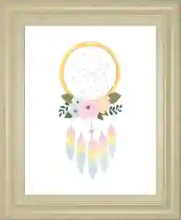 Choosing a piece with a watercolor illustration, like this dreamcatcher artwork, is an excellent strategy for longevity. The soft pink, yellow, and blue palette combined with a traditional ivory frame creates a timeless aesthetic that transitions easily from a nursery to a teen's room. Unlike highly character-specific decor, this watercolor medium offers a sophisticated yet playful look that remains relevant as your child's tastes evolve.