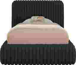 Slumbering in style feels like a dream come true with the downy soft delight of the kids Charlize bed. Covered with fuzzy black channels, this piece is fully upholstered with fabric that has the look and feel of faux fur. The platform bed's low-profile design features reversible side rails, allowing you to tailor your mattress and foundation height by placing them inside or on the frame. Offering a final touch of convenience, the bed's headboard is equipped with USB-A and USB-C fast charging ports to easily power up some of your favorite devices. Mattress and foundation (if required) sold separately. Upholstery: 100% Polyester