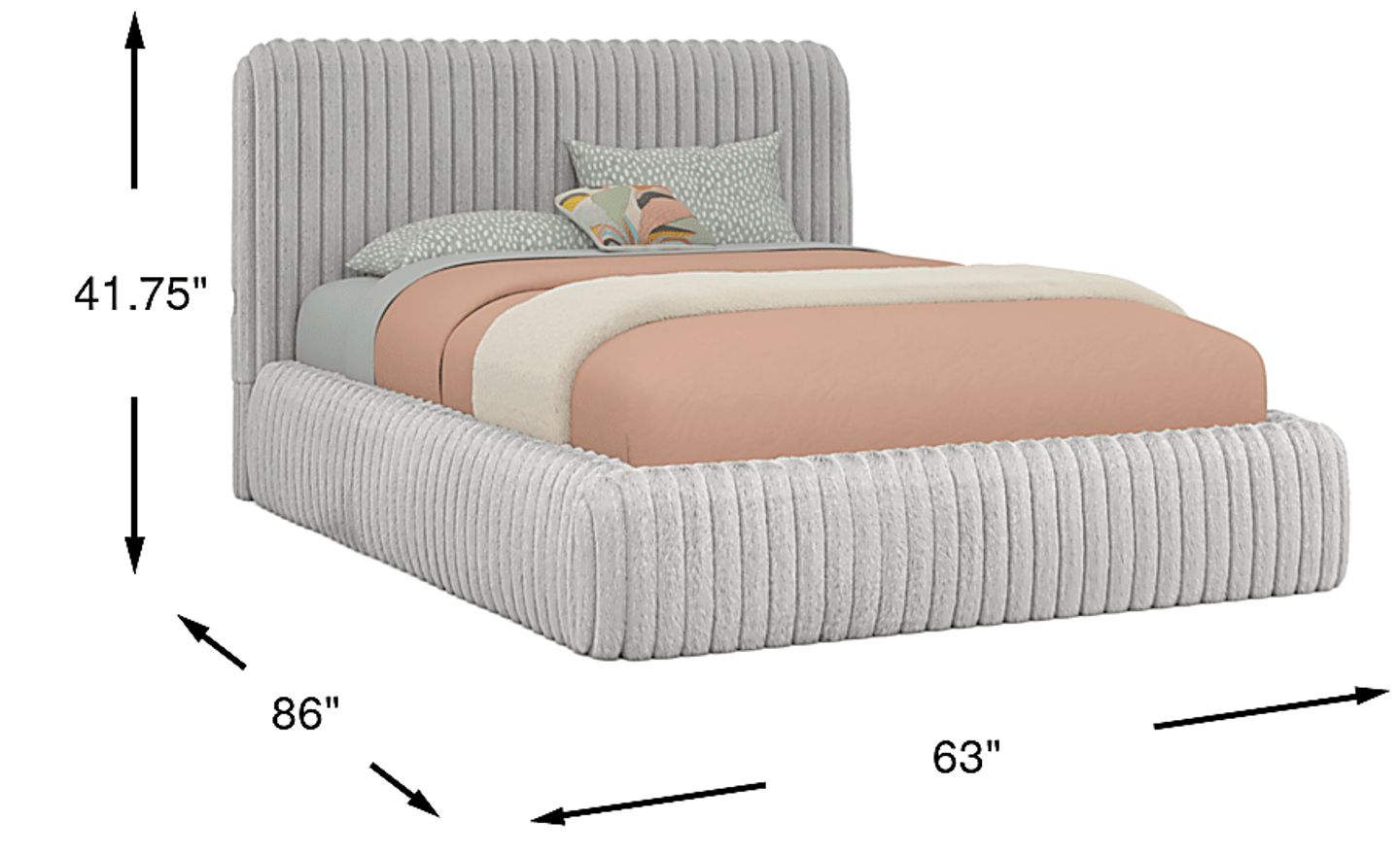 Slumbering in style feels like a dream come true with the downy soft delight of the kids Charlize bed. Covered with fuzzy light gray channels, this piece is fully upholstered with fabric that has the look and feel of faux fur. The platform bed's low-profile design features reversible side rails, allowing you to tailor your mattress and foundation height by placing them inside or on the frame. Offering a final touch of convenience, the bed's headboard is equipped with USB-A and USB-C fast charging ports to easily power up some of your favorite devices. Mattress and foundation (if required) sold separately. Upholstery: 100% Polyester