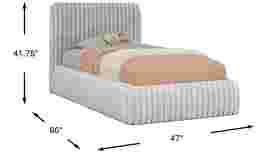 Slumbering in style feels like a dream come true with the downy soft delight of the kids Charlize bed. Covered with fuzzy light gray channels, this piece is fully upholstered with fabric that has the look and feel of faux fur. The platform bed's low-profile design features reversible side rails, allowing you to tailor your mattress and foundation height by placing them inside or on the frame. Offering a final touch of convenience, the bed's headboard is equipped with USB-A and USB-C fast charging ports to easily power up some of your favorite devices. Mattress and foundation (if required) sold separately. Upholstery: 100% Polyester