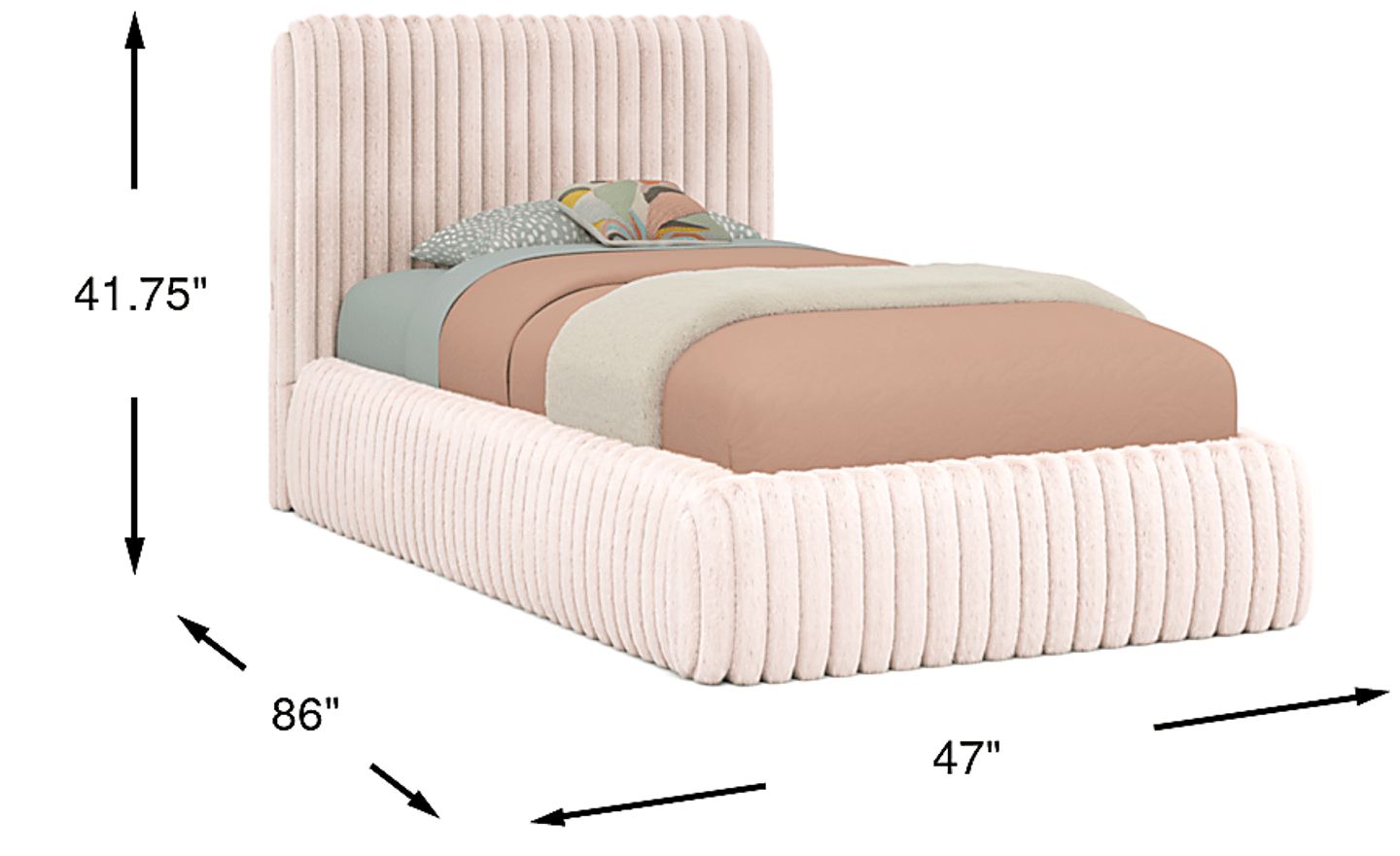 Slumbering in style feels like a dream come true with the downy soft delight of the kids Charlize bed. Covered with fuzzy pink channels, this piece is fully upholstered with fabric that has the look and feel of faux fur. The platform bed's low-profile design features reversible side rails, allowing you to tailor your mattress and foundation height by placing them inside or on the frame. Offering a final touch of convenience, the bed's headboard is equipped with USB-A and USB-C fast charging ports to easily power up some of your favorite devices. Mattress and foundation (if required) sold separately. Upholstery: 100% Polyester