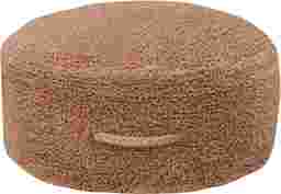 This unique artisan pouf is thoughtfully designed by Lorena Canals. Every step of the process prioritizes minimizing waste and creating long-lasting, eco-friendly pieces. The round pouf comes in a warm chestnut color and features a handmade braided handle in a matching tone. Its top and sides are covered in soft rug pile, while the bottom is crafted from durable cotton canvas and finished with a zipper. Inside, a removable filler filled with polystyrene pearls adds comfort and practicality.