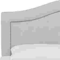 The gentle arched silhouette of the Classical Notes bed has all the hallmarks of a classic camel back design. A trim of decorative nailheads completes the irresistible look. A beautiful platinum fabric complements a classic frame. This bed is manufactured in Illinois, USA. Customer assembly is required. Foundation required. Mattress and foundation sold separately.