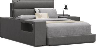 Kids Cloud9 Charcoal Full Upholstered Bed With Nightstand And Bookcase