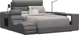 This "smart bedroom" design is an ideal solution for smaller footprints. By integrating a bookcase with open cubbies and a swivel table directly into the suite, it eliminates the need for a separate desk or bulky shelving unit. The nightstand further maximizes utility with a lift-top panel for hidden storage, and the low-slung lounger provides a dedicated spot for reading or gaming without the bulk of a traditional armchair.