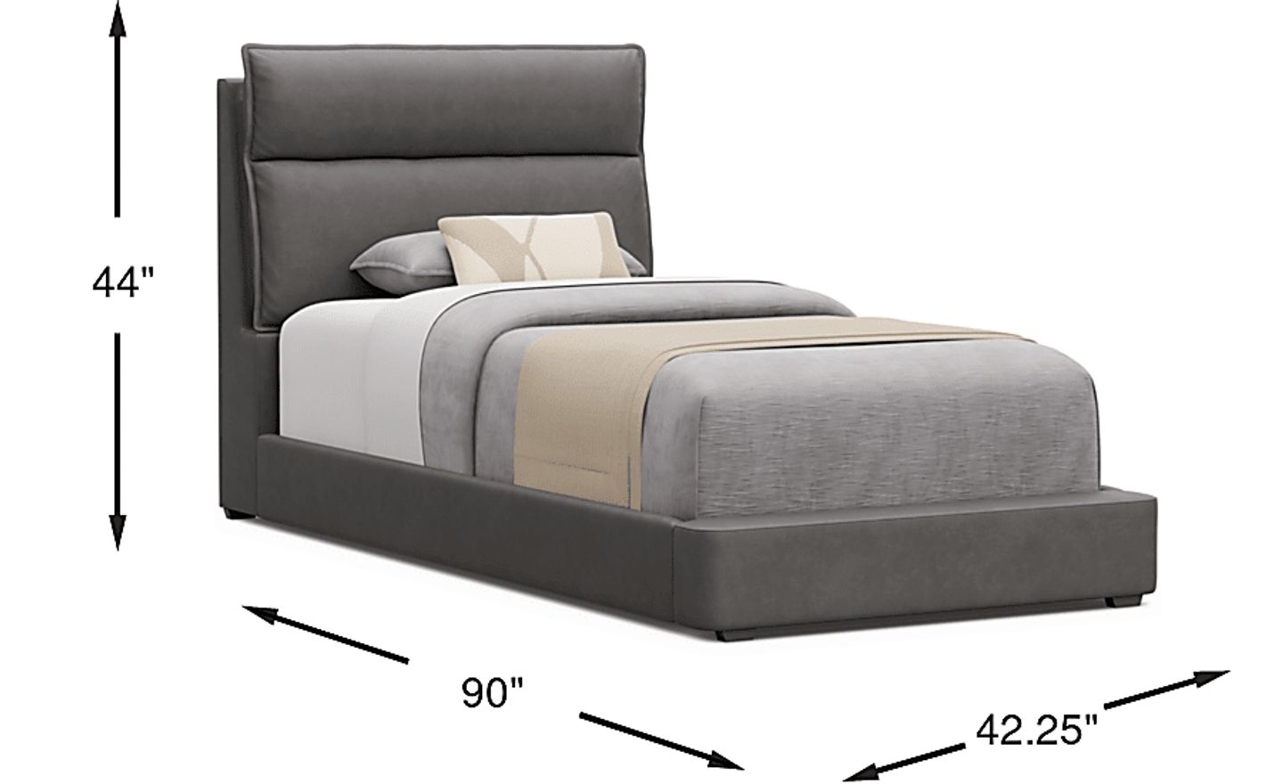Your forecast calls for a 100% chance of style and unbelievable cool factor when you bring the Cloud9 collection home. Perfect for older kids, teens and young adults, this bed features a sleek silhouette with softly padded panels that give off a tailored yet laid-back vibe. The headboard is generously cushioned for lounging and finished with subtle stitch lines that add dimension without overwhelming the piece. The low platform base grounds the twin bed with clean, modern lines, while the plush suede-soft charcoal colored microfiber upholstery offers a grown-up look and feel. Upholstery: 100% Polyester. Mattress and foundation (if required) sold separately.
