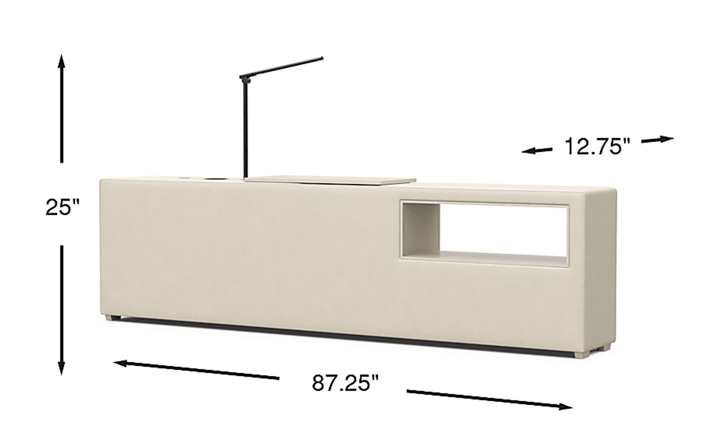 12.75"w x 87.25"d x 25.00"h
