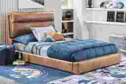 Your forecast calls for a 100% chance of style and unbelievable cool factor when you bring the Cloud9 collection home. Perfect for older kids, teens and young adults, this bed features a sleek silhouette with softly padded panels that give off a tailored yet laid-back vibe. The headboard is generously cushioned for lounging and finished with subtle stitch lines that add dimension without overwhelming the piece. The low platform base grounds the full bed with clean, modern lines, while the plush suede-soft saddle colored microfiber upholstery offers a grown-up look and feel. Upholstery: 100% Polyester. Mattress and foundation (if required) sold separately.