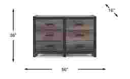 This dresser provides extensive organization options with six individual drawers. Measuring 56"W x 16"D x 36"H, it offers the storage capacity of a primary bedroom piece but is scaled appropriately for a child’s or teen’s bedroom. The six-drawer configuration is ideal for separating different types of clothing or sharing storage space between siblings.