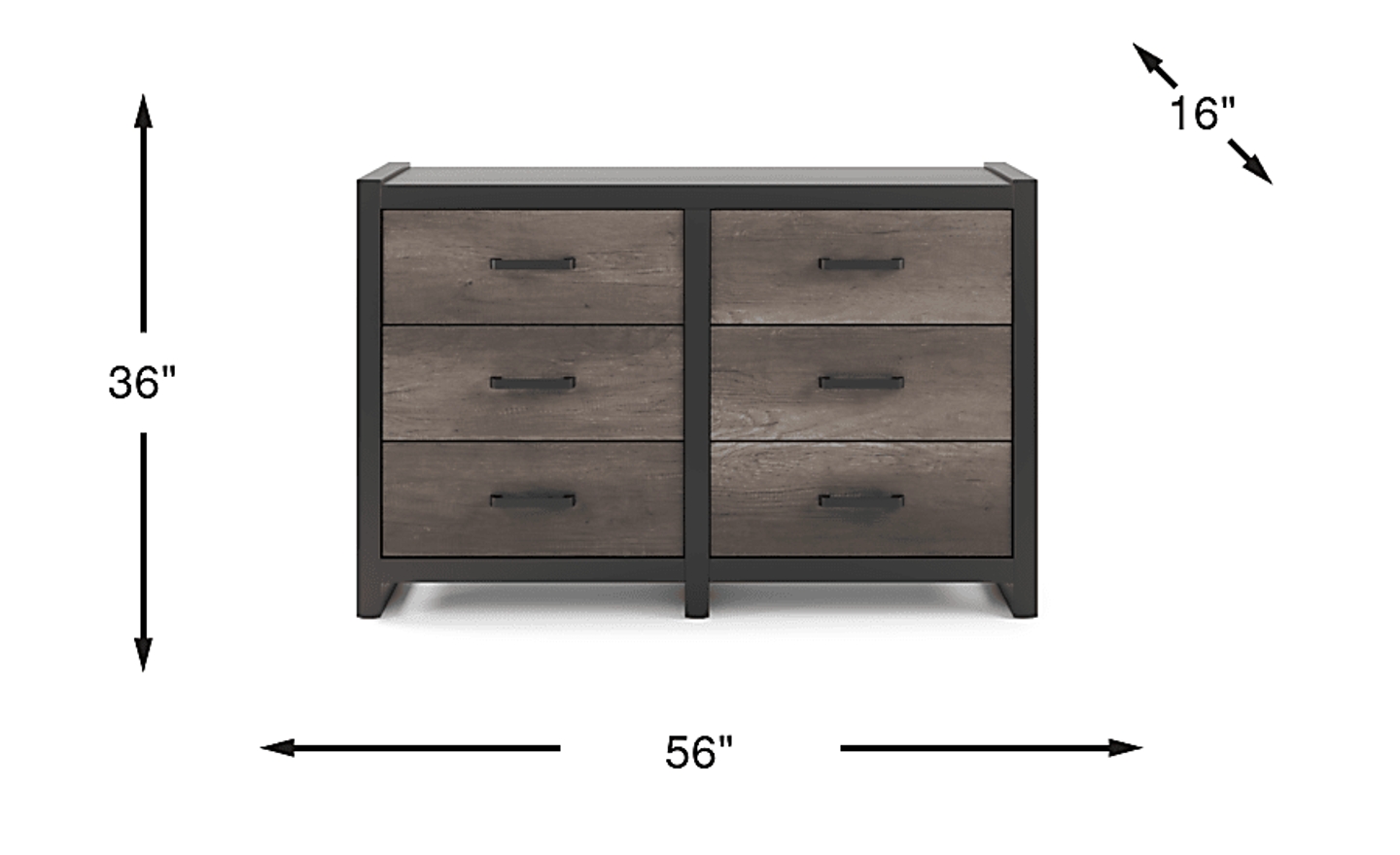 With a depth of only 16 inches, this dresser is an excellent solution for smaller bedrooms or urban living spaces where floor area is at a premium. Its relatively slim profile allows it to fit comfortably in tighter walkways without sacrificing storage capacity. The 56-inch width provides a generous top surface for organization or display, making it a functional choice for maximizing space.