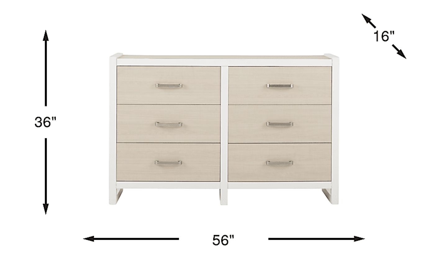 Inspired by modern design, the Colefax Avenue dresser is the perfect piece to complete your teen's bedroom. Constructed from melamine and wood solids in a two-tone white and cream finish, oversized metallic hardware adds a polished touch. Each drawer is stabilized with English dovetail construction and kenlin guides, while dust-proofing along the bottom keeps their entire wardrobe free from dust.