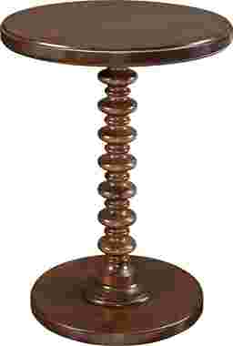 The Corby brown table features a bright, smooth finish and a spindle circular base. Its round edges and classic style will add charm to any space. Sized perfectly to sit next to your favorite chair, the table gives a fun pop of color to any room. Customer assembly is required.
