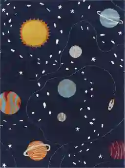 The "Planets" pattern is strategically designed to stimulate young minds and encourage imaginative play. By incorporating modern design elements into a contemporary navy palette, this rug serves as both a cozy floor covering and a visual tool that can spark curiosity about science and space, making it a functional addition to a learning-focused bedroom.