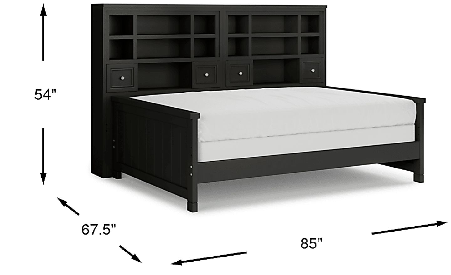 Make the most of the space in your child's bedroom with the Cottage Colors bookcase daybed. Featuring double bookshelves with open cubbies and drawers, there is plenty of space to store books or display collectibles. Showcasing a chic black finish, the bed is detailed with beautiful paneling details for a timeless look. A dual height rail setting offers an adjustable height, growing with your child. Store an extra mattress in style with the matching trundle option, sold separately. Mattress and foundation (if required) sold separately. Bed shown is twin size.