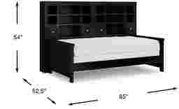 Make the most of the space in your child's bedroom with the Cottage Colors bookcase daybed. Featuring double bookshelves with open cubbies and drawers, there is plenty of space to store books or display collectibles. Showcasing a chic black finish, the bed is detailed with beautiful paneling details for a timeless look. A dual height rail setting offers an adjustable height, growing with your child. Store an extra mattress in style with the matching trundle option, sold separately. Mattress and foundation (if required) sold separately.