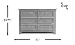 An attractive bedroom essential, the Cottage Colors dresser provides six generous drawers of storage. The piece is crafted of poplar solids with a chic gray finish. Each drawer has paneling detail and brushed nickel finished hardware. Drawer pulls are rounded and edges are curved for added safety.