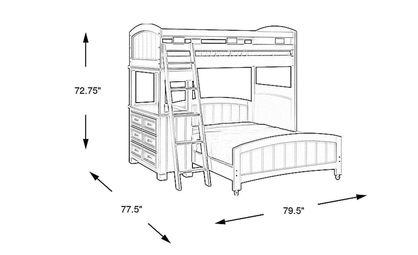 The Cottage Colors twin/full loft offers a great look and fantastic value. This classic loft keeps it simple with a traditional design that will never go out of style while including a built in dresser for space saving storage. The chic gray finish, pretty paneling detail and brushed nickel finished hardware add to the charm and ensure the room will remain appealing as your child grows. Mattresses and foundations (if required) sold separately. Bunkie Boards required for mattress support.
