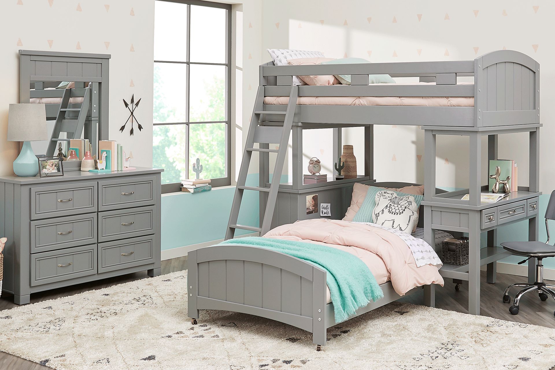 Kids Cottage Colors Gray Twin Loft Bunk With Desk And Dresser